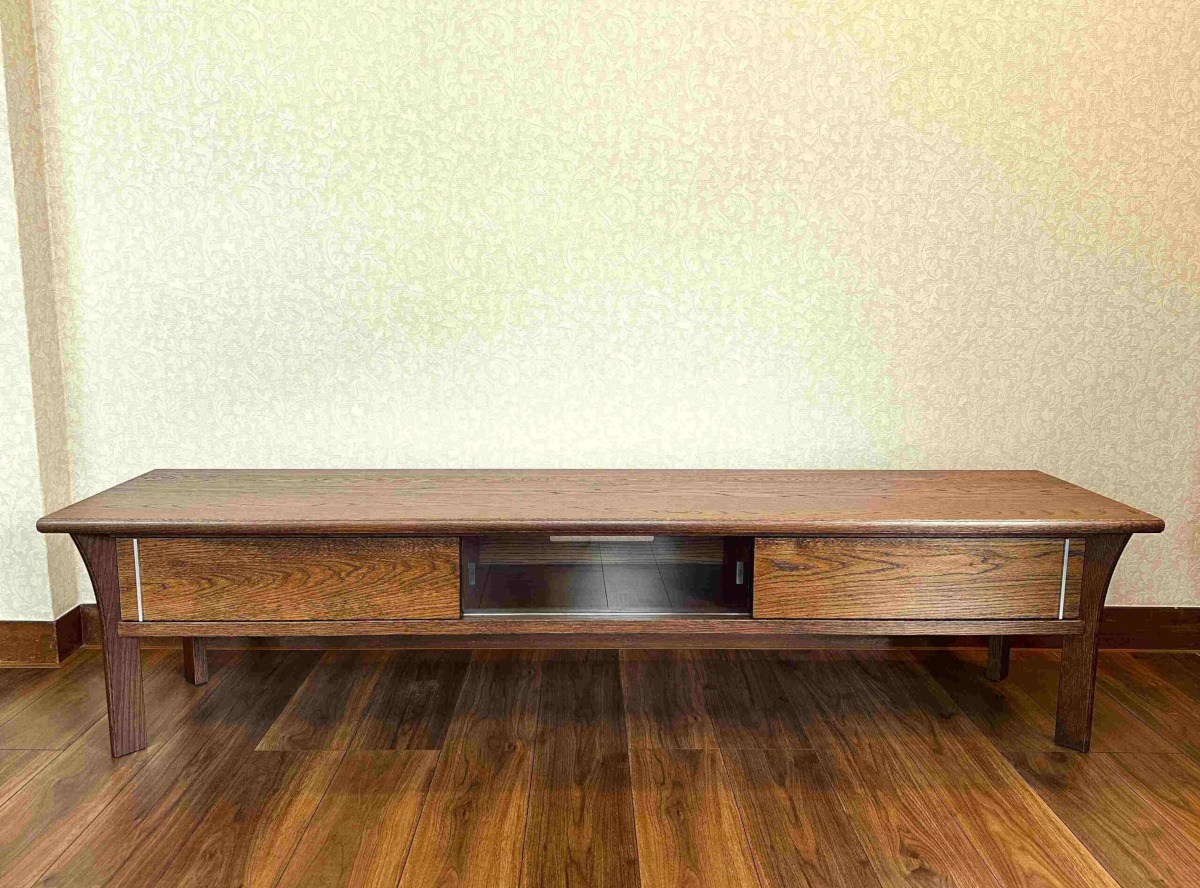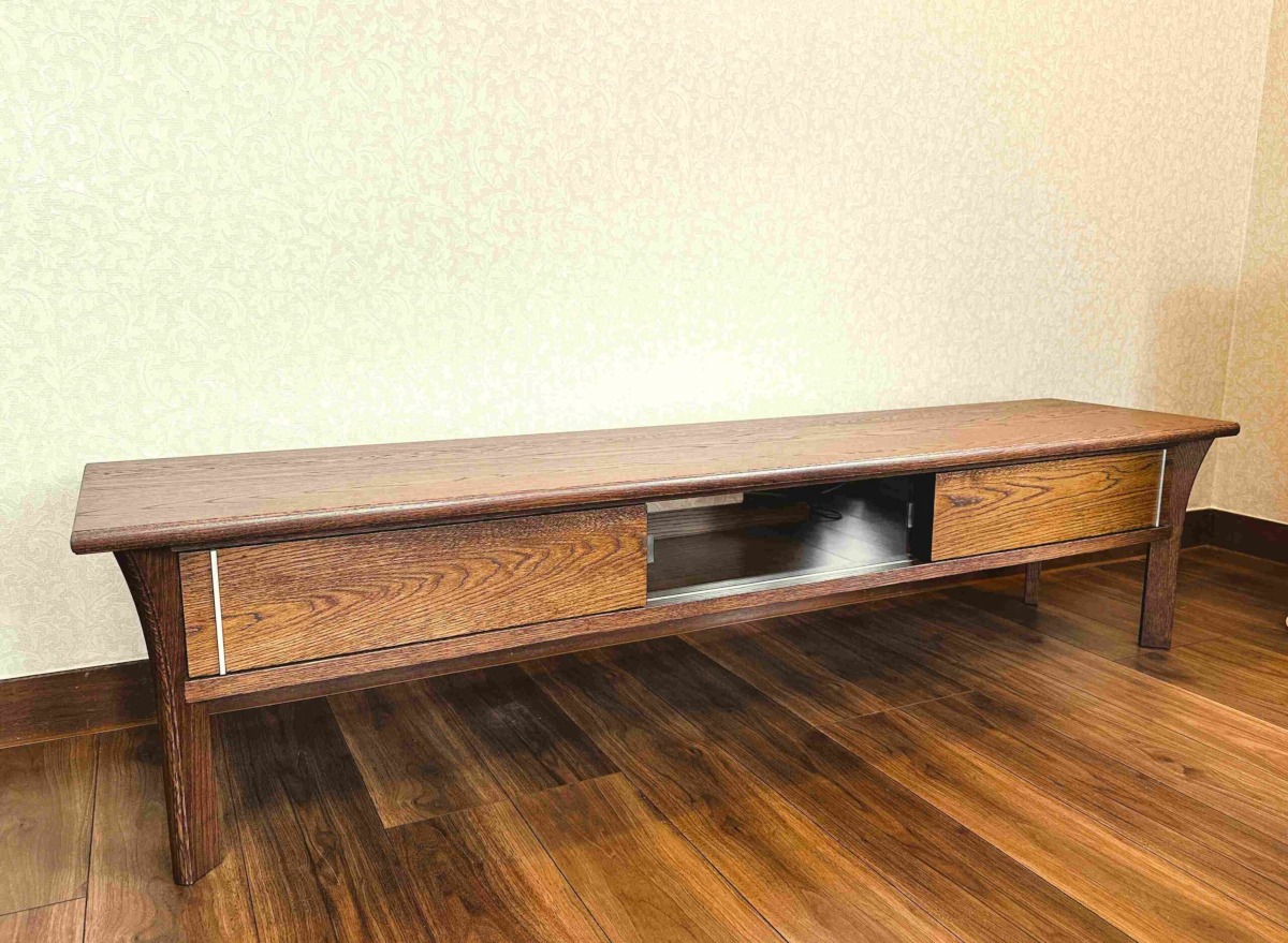 今回は、無垢のオーク材を贅沢に使用したTVボードをご紹介します。お部屋の雰囲気に調和するよう細部までこだわって設計・製作した、まさにオーダーメイドならではの一台です。