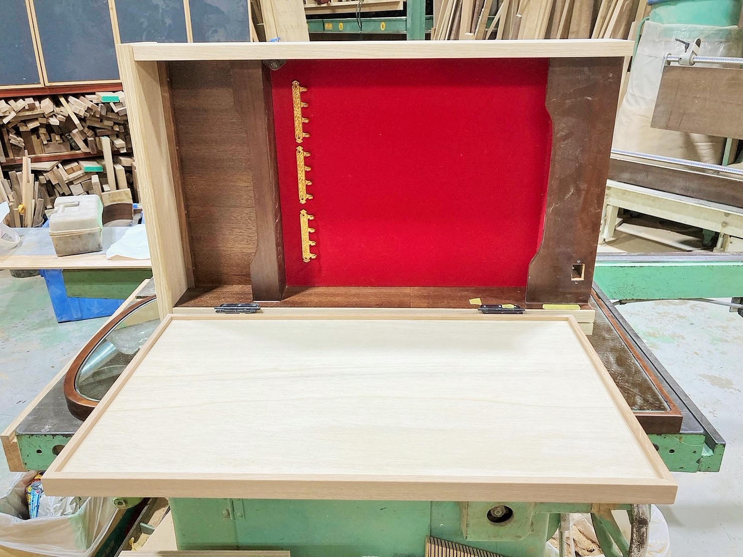 完成後のドレッサーは、明るくやわらかなナラ材の木肌が印象的な一台に。