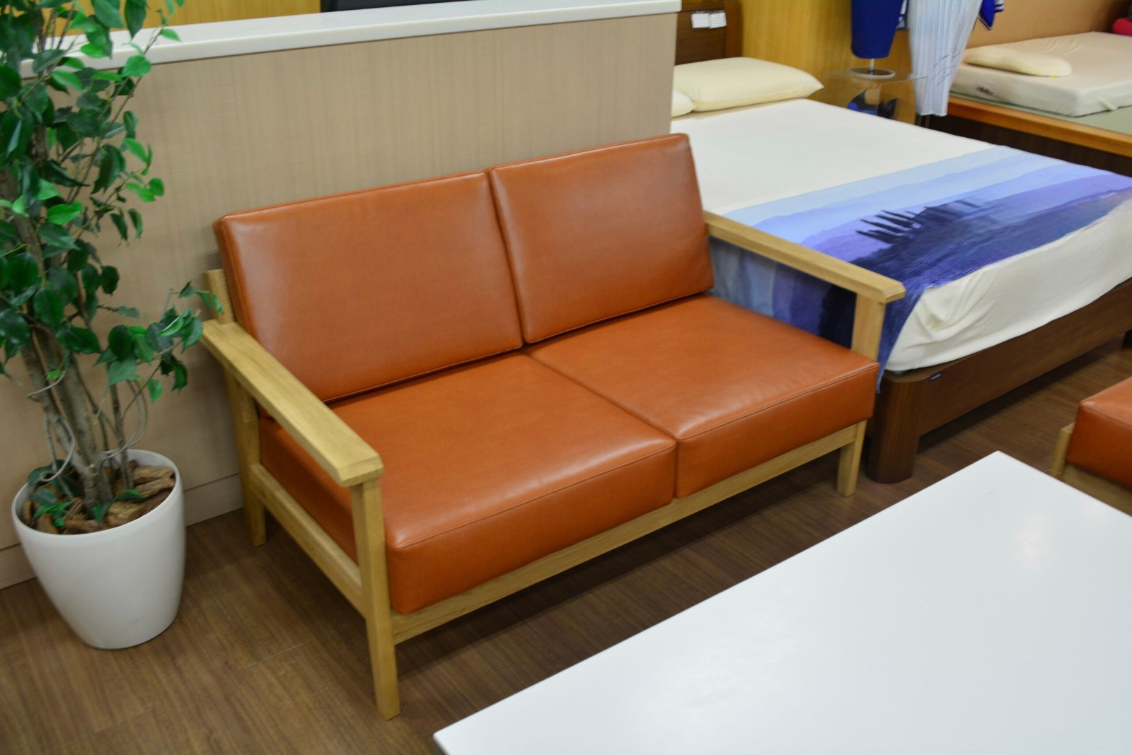 木の温もりと機能性を兼ね備えた、ナラ材フレームの木製ソファ。