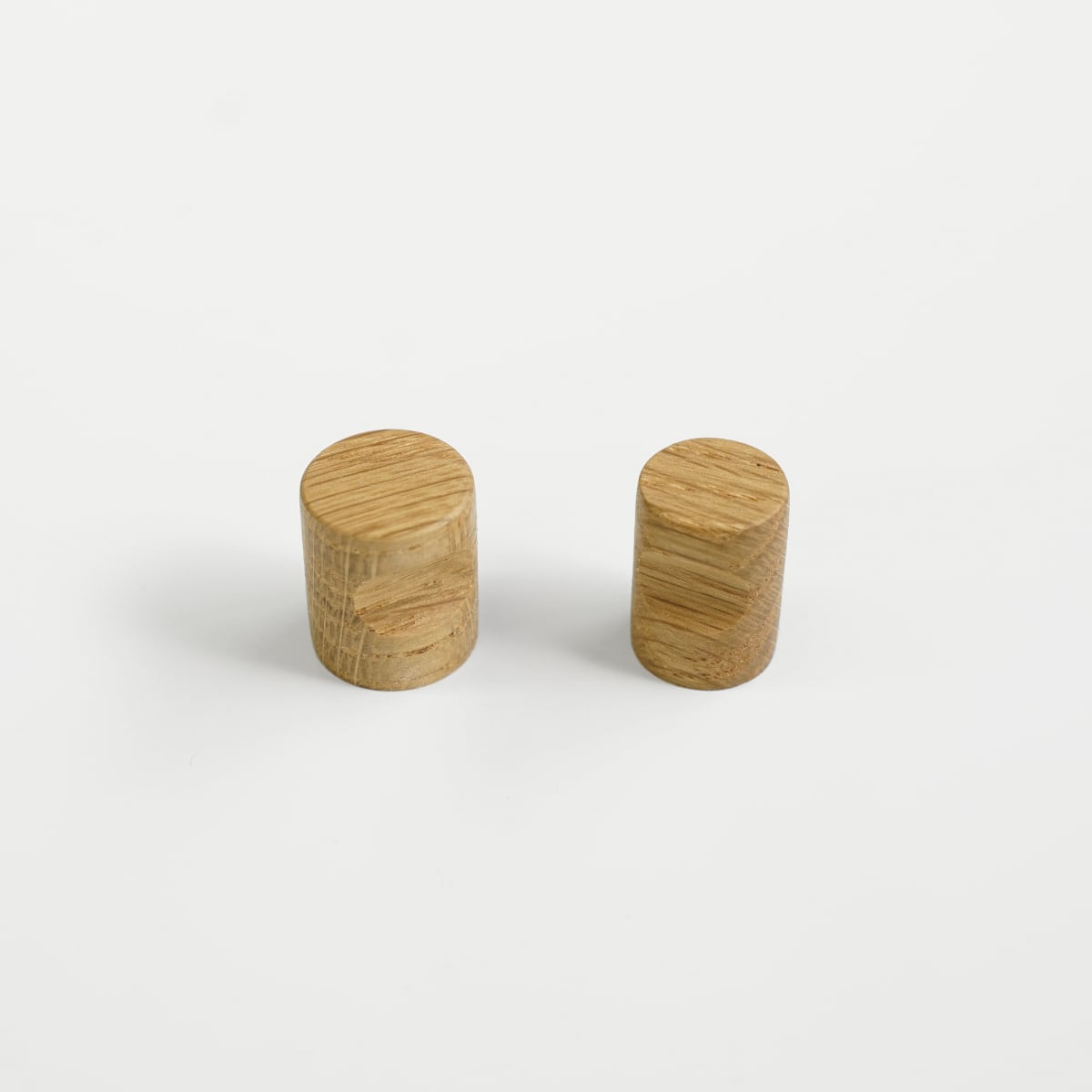 「post knob つまみP」は、丸みのある円柱形フォルムに、手に馴染む凹みを加えた、やさしくて機能的なデザインが魅力の木製つまみです。