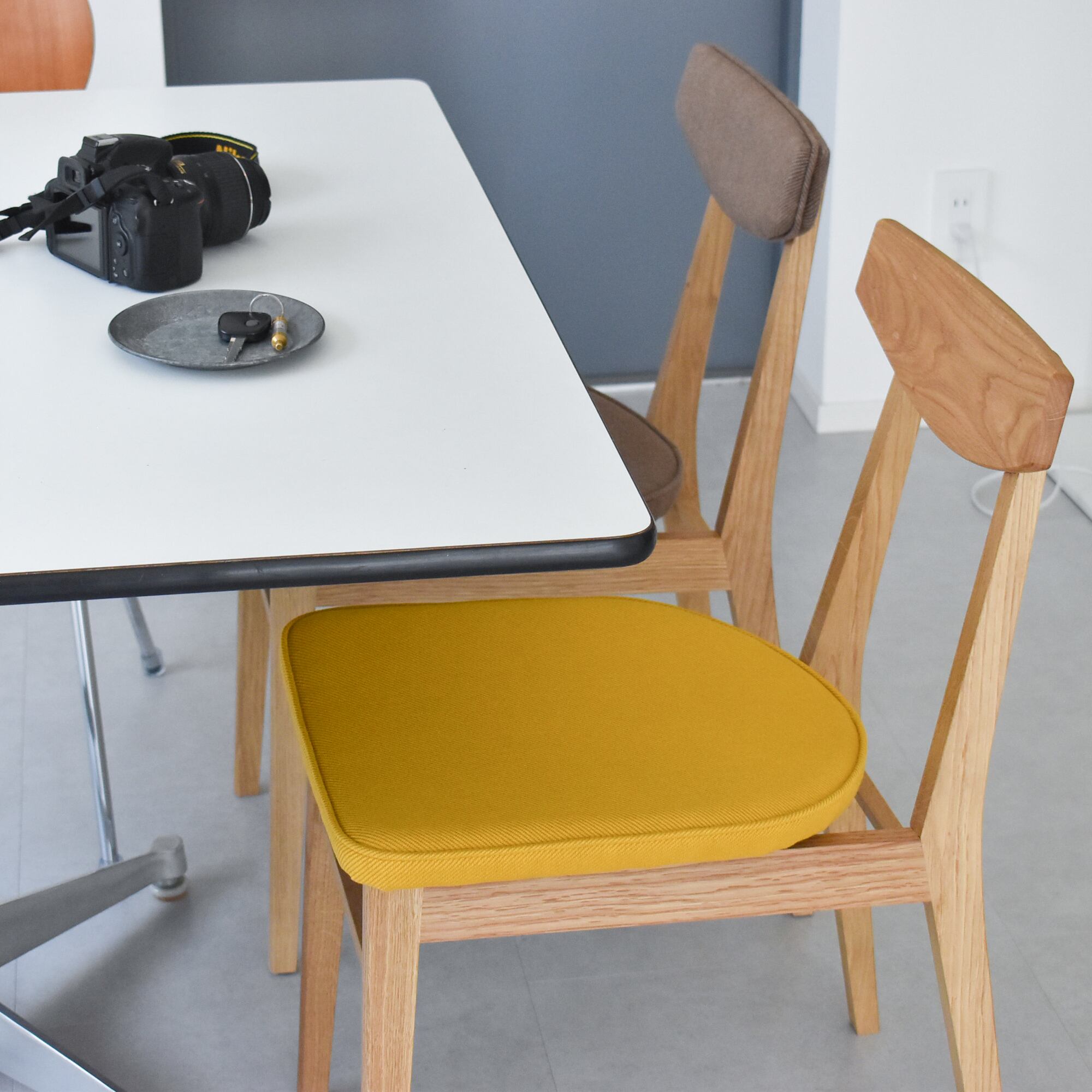 ダイニングチェアは椅子をテーブルに仕舞ってある時間が長いことから、背面から見たダイニングチェアが美しく見えるデザインにいたしました。これによりダイニングのインテリアがより一層引き立ち、他にはない空間が生まれます。