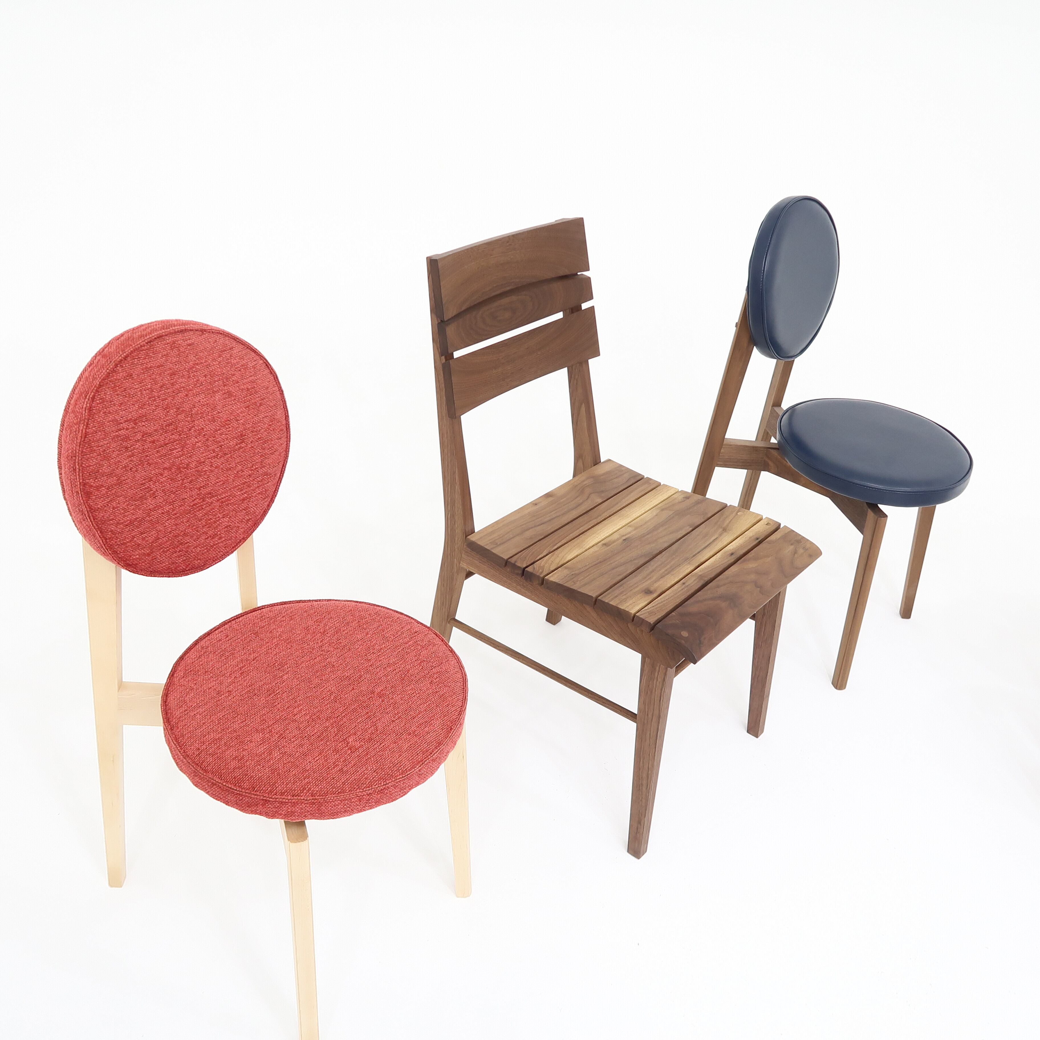 印象的な円形の座面と背もたれによる、スタイリッシュなデザインが特徴のオーバルチェア。肘掛けのないすっきりとしたスリムなボディは、コンパクトな空間で最もその良さが引き立ちます。